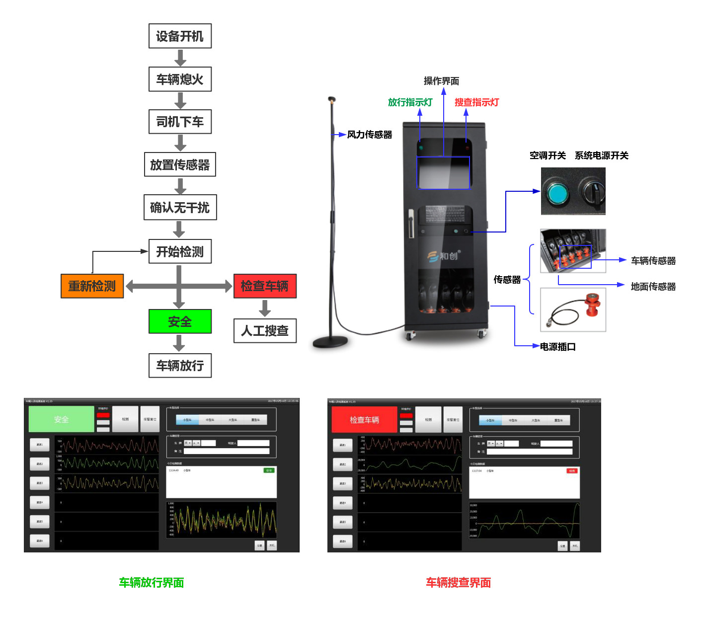 微震人員檢查系統是一種利用微小震動傳感信號對車廂內藏人員進行探測 的設備,該設備適用于監(jiān)獄、邊防、公共安全等領域對車內藏匿人員進行檢查。 車輛內部藏匿有人的時候,藏匿者的心臟會產生有節(jié)律的跳動,此震動會 傳遞到車輛底部和支撐系統上,通過連接傳感器與被檢車輛,將此震動采集并通 過數據線纜傳遞回數據分析設備,由軟件進行分析,分析軟件運算范圍精確集中 在心臟跳動的頻率范圍內,以這種震動分析為基礎,在顯示終端上可明確顯示是 否有人存在,并伴隨聲光報警。